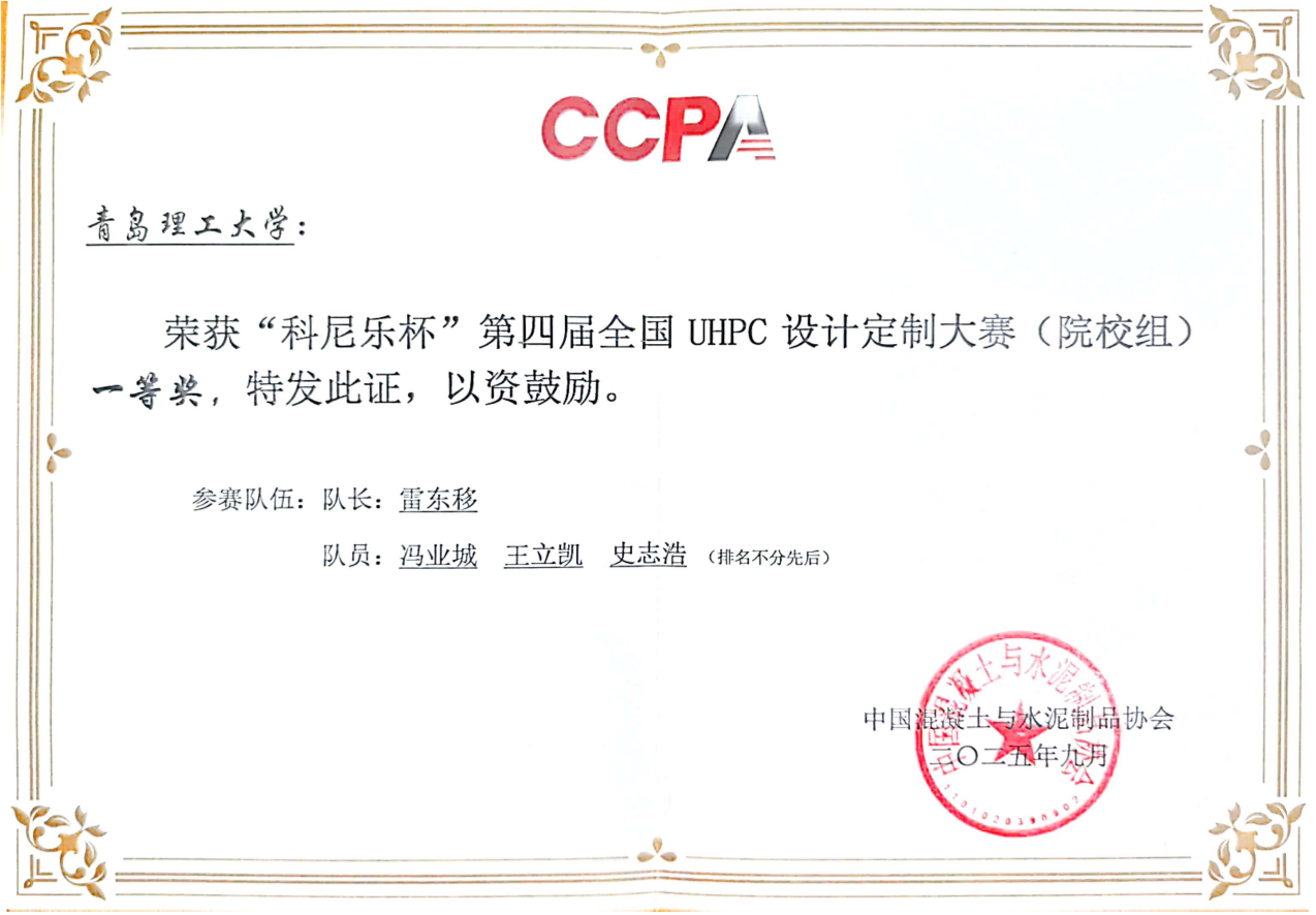 近日,“科尼乐杯”第四届全国UHPC设计定制大赛在广州落下帷幕。土木工程学院土木水利专业研究生冯业城、王立凯、史志浩独立设计并制作的“UHPC球”,凭借其卓越的材料性能、结构设计,荣获大赛院校组唯一一等奖。